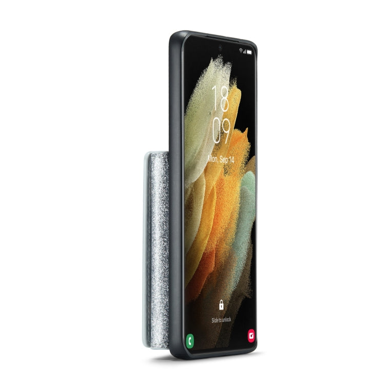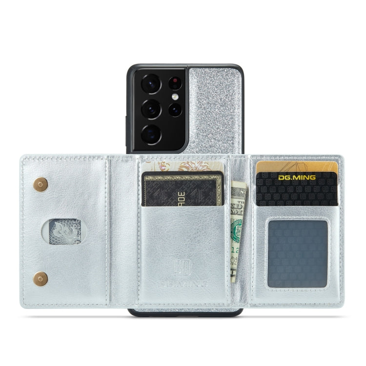 For Samsung Galaxy S21 Ultra 5G DG.MING M3 Series Glitter Powder Card Bag Leather Case(Silver)