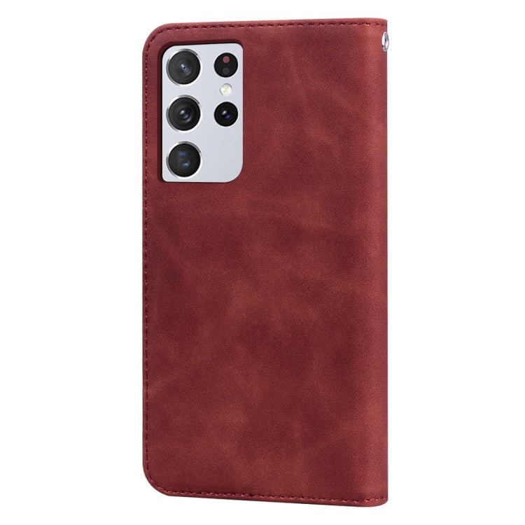 For Samsung Galaxy S21 Ultra 5G Frosted Business Magnetic Horizontal Flip PU Leather Case with Holder & Card Slot & Lanyard(Brown)