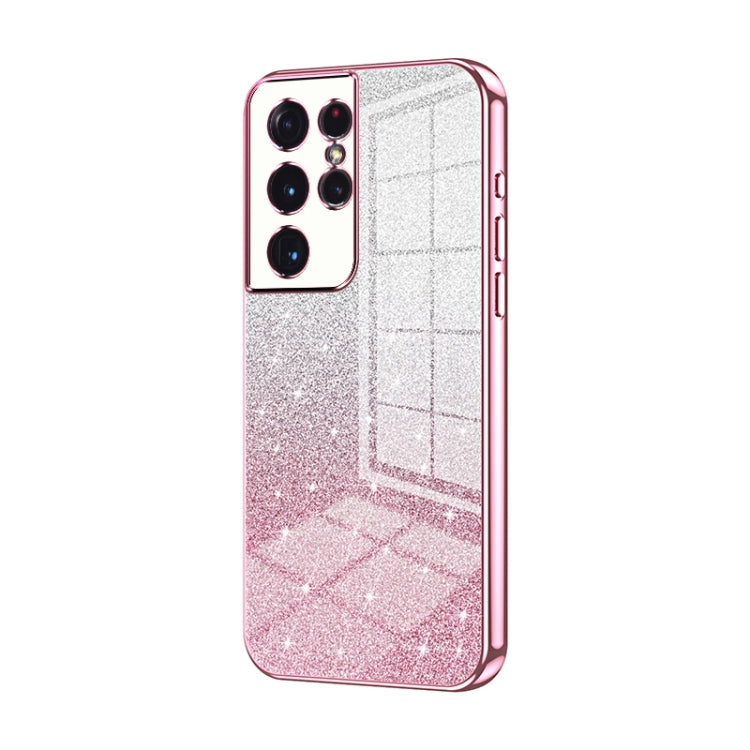 For Samsung Galaxy S21 Ultra 5G Gradient Glitter Powder Electroplated Phone Case(Pink)