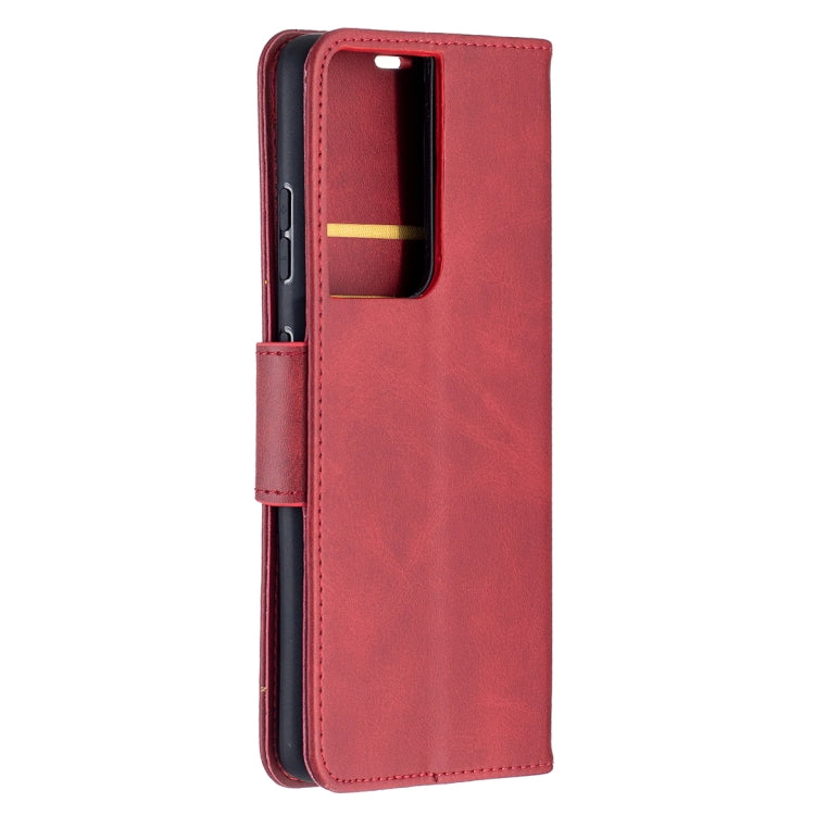 For Samsung Galaxy S21 Ultra 5G Lambskin Texture Pure Color Horizontal Flip PU Leather Case with Holder & Card Slots & Wallet & Lanyard(Red)