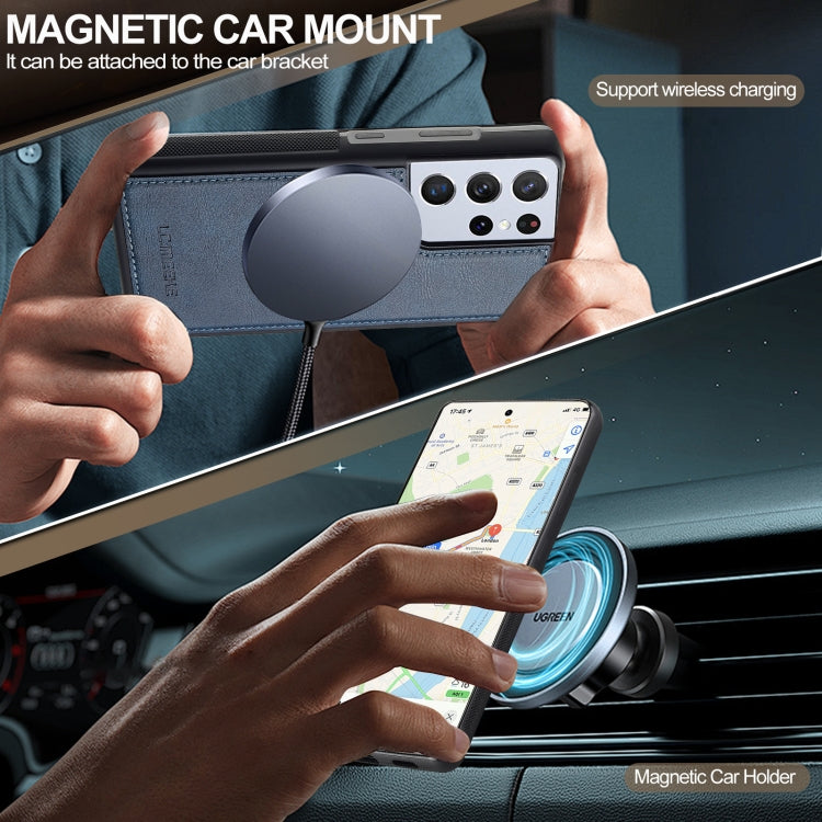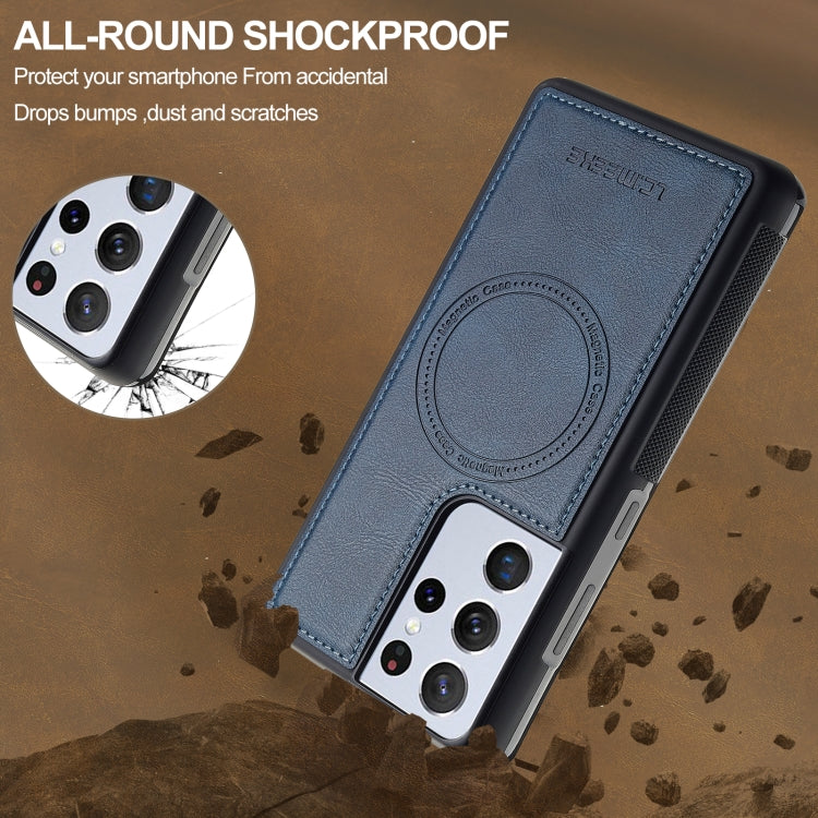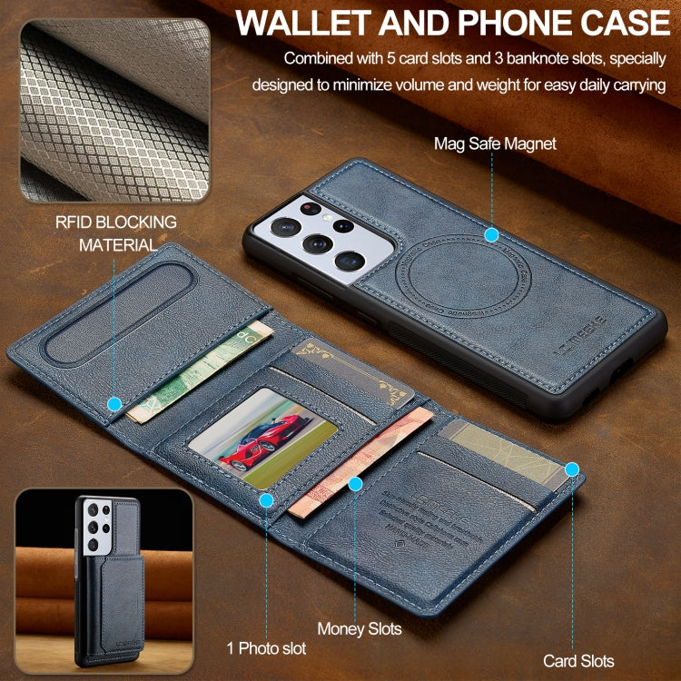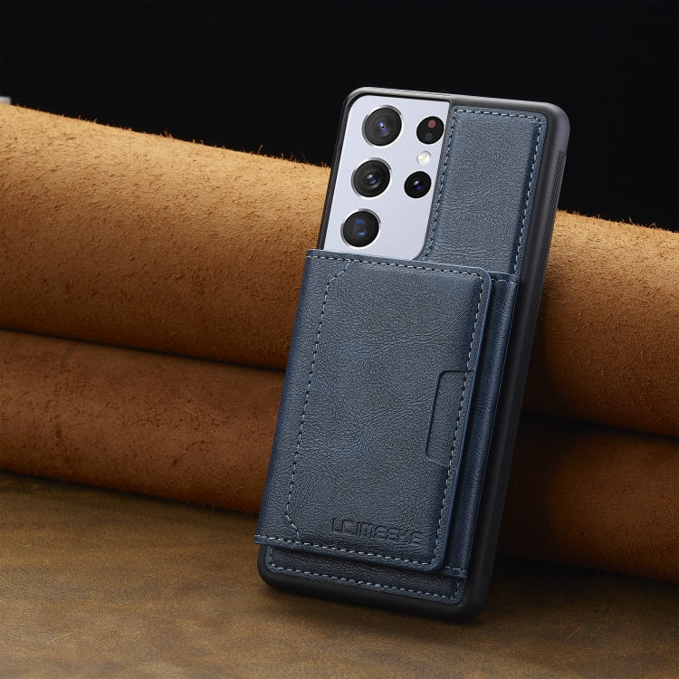 For Samsung Galaxy S21 Ultra 5G LC.IMEEKE L5 Series Detachable RFID Card Bag Magsafe Phone Case(Blue)