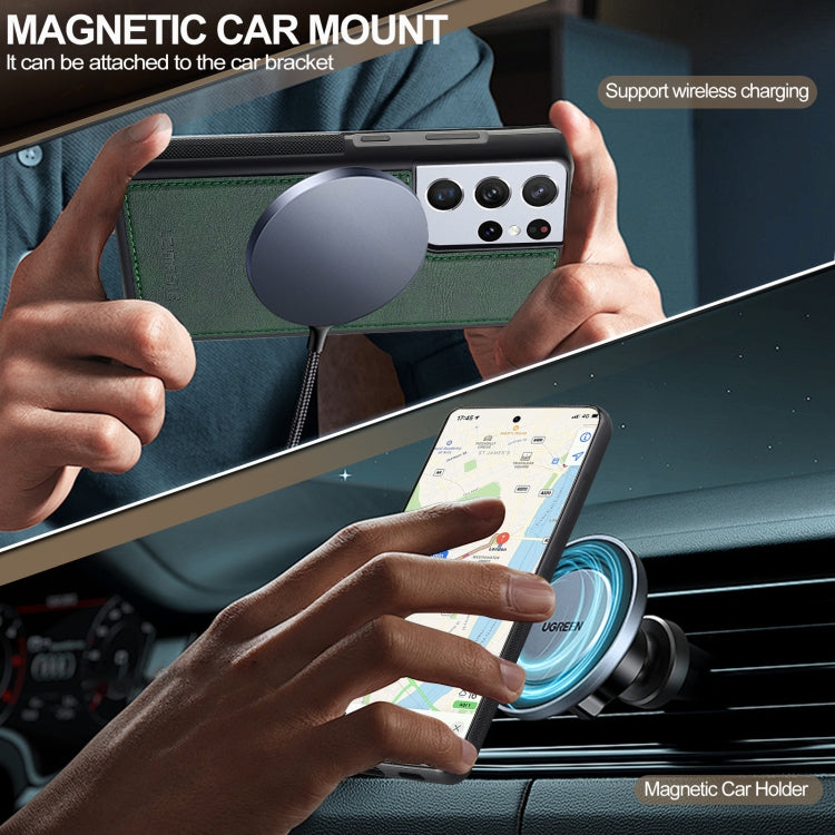 For Samsung Galaxy S21 Ultra 5G LC.IMEEKE L5 Series Detachable RFID Card Bag Magsafe Phone Case(Green)