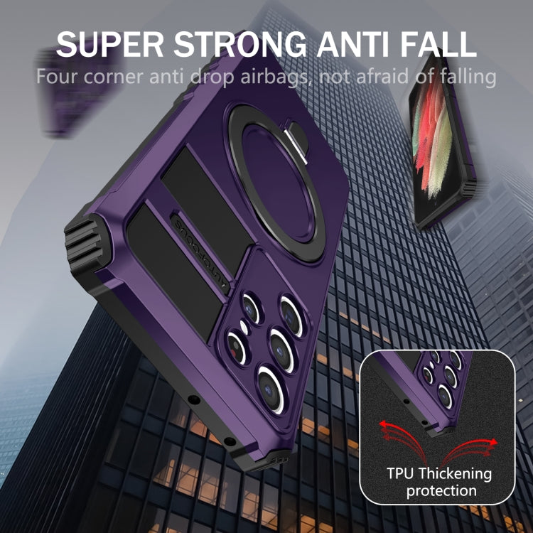 For Samsung Galaxy S21 Ultra 5G MagSafe Magnetic Holder Phone Case(Purple)