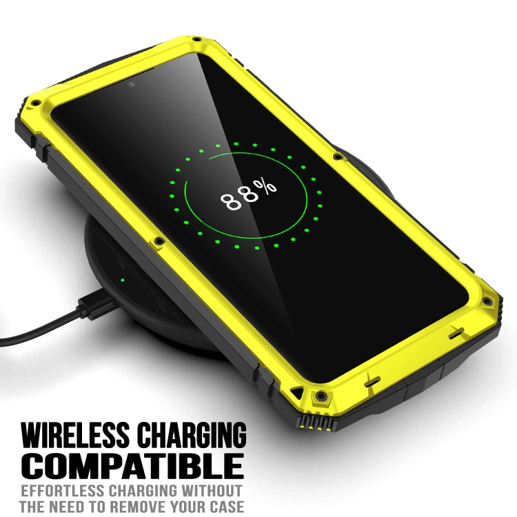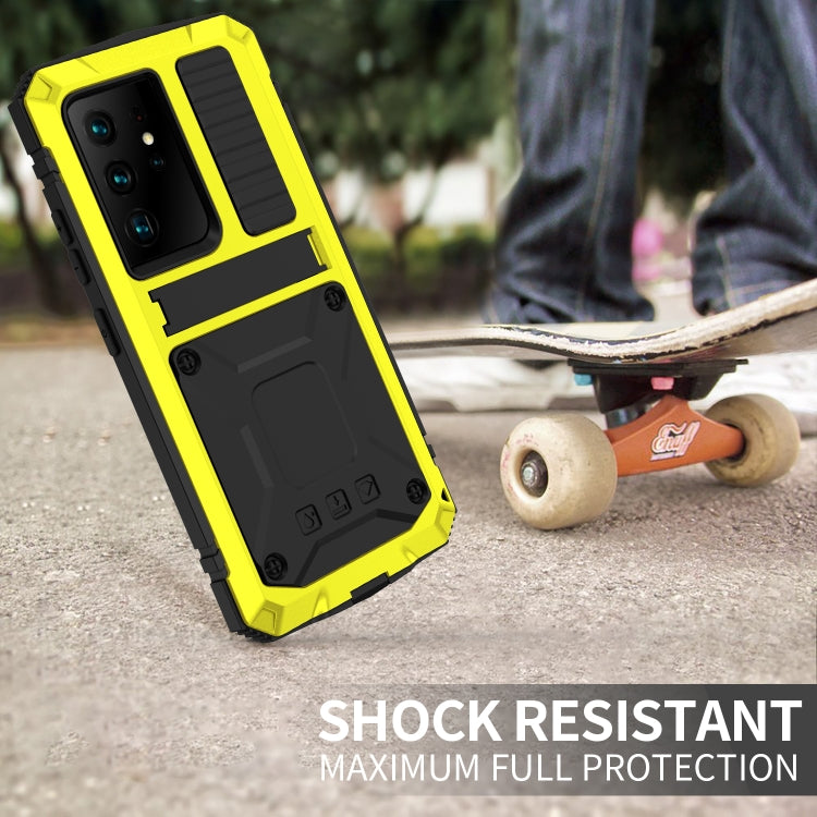 For Samsung Galaxy S21 Ultra 5G R-JUST Shockproof Waterproof Dust-proof Metal + Silicone Protective Case with Holder(Yellow)