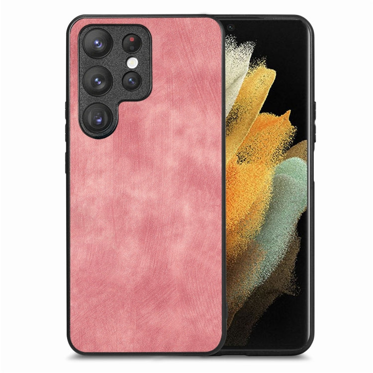 For Samsung Galaxy S21 Ultra 5G Vintage Leather PC Back Cover Phone Case(Pink)