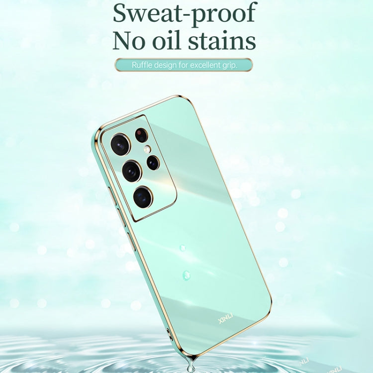 For Samsung Galaxy S21 Ultra 5G XINLI Straight Edge 6D Electroplate TPU Phone Case with Ring Holder(Cherry Purple)