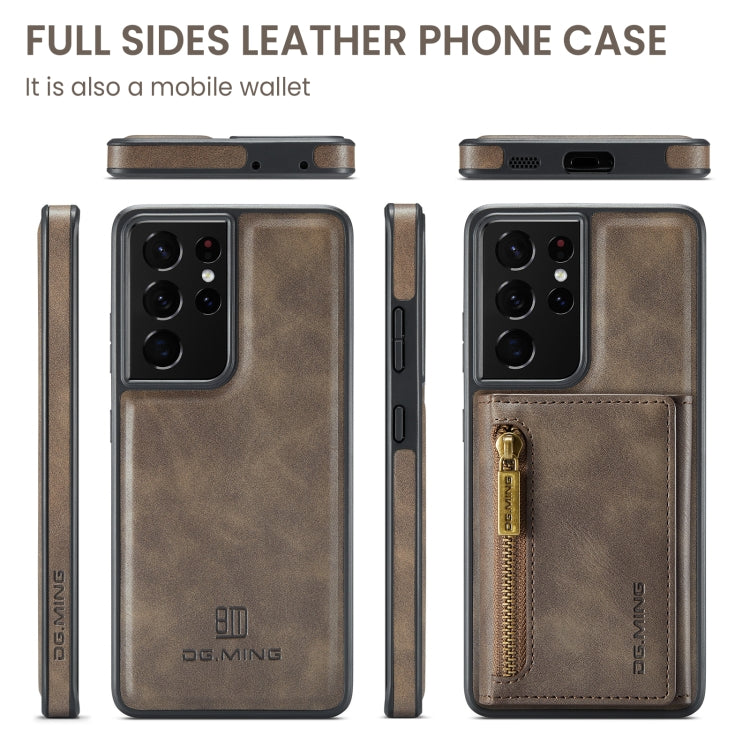 For Samsung Galaxy S21 Ultra DG.MING M5 Series Zip RFID Multi Card Detachable Leather Phone Case(Coffee)