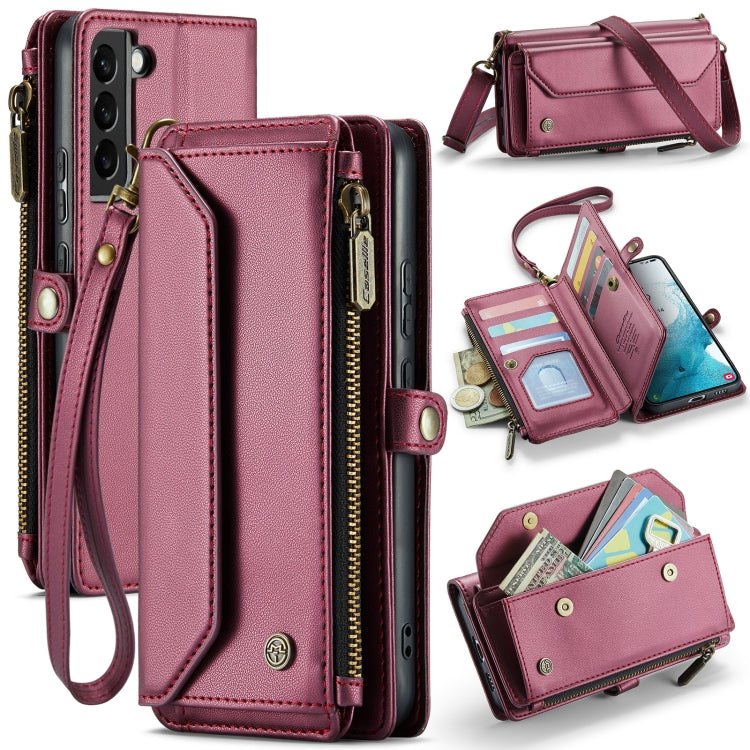 For Samsung Galaxy S22+ 5G CaseMe C36 Card Slots Zipper Wallet RFID Anti-theft Leather Phone Case(Wine Red)