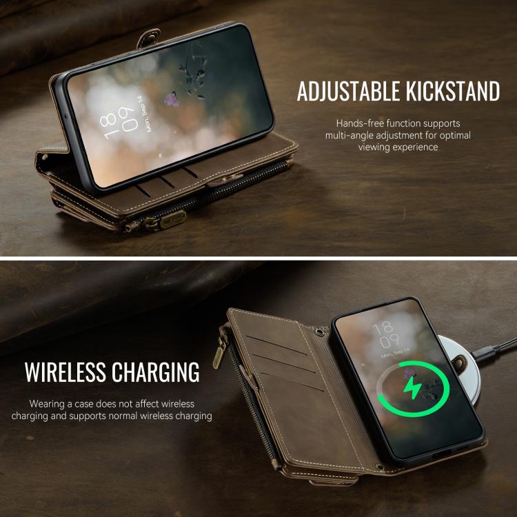 For Samsung Galaxy S22+ 5G CaseMe C39 RFID Blocking Zipper Wallet Leather Phone Case with Crossbody Strap(Coffee)