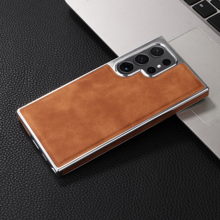 For Samsung Galaxy S22+ 5G Electroplated Side PU Hybrid TPU MagSafe Phone Case(Brown)