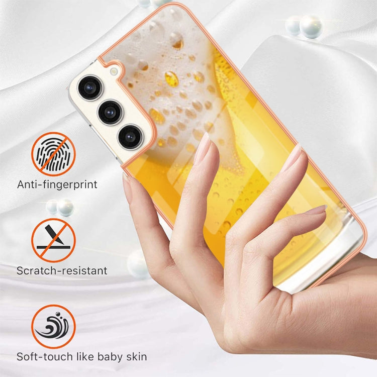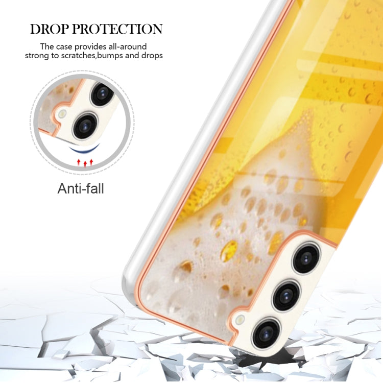 For Samsung Galaxy S22+ 5G Electroplating Marble Dual-side IMD Phone Case(Draft Beer)