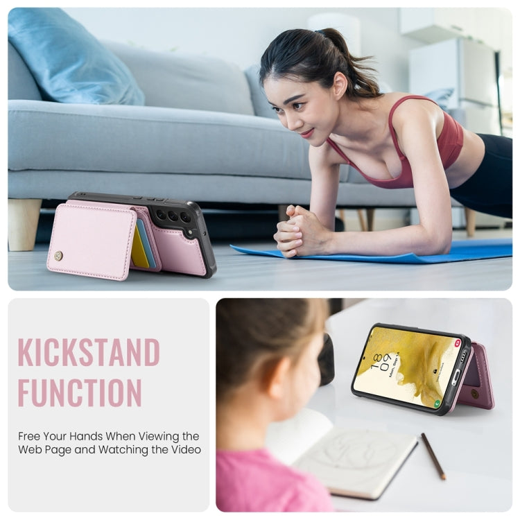 For Samsung Galaxy S22+ 5G JEEHOOD J05 Business Magnetic Style RFID Leather Phone Case(Pink)