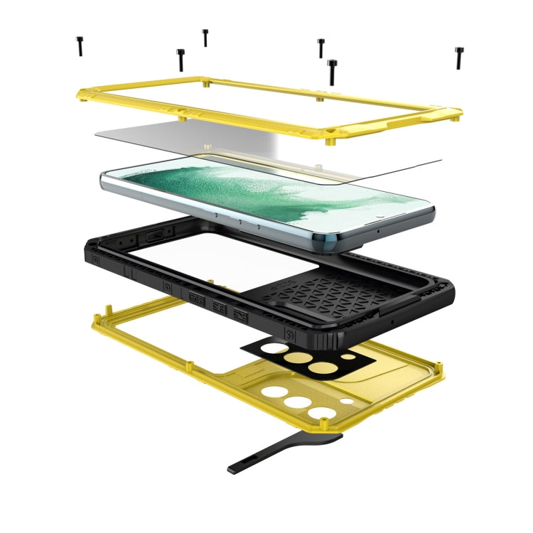 For Samsung Galaxy S22 5G Metal + Silicone Phone Case with Screen Protector(Yellow)