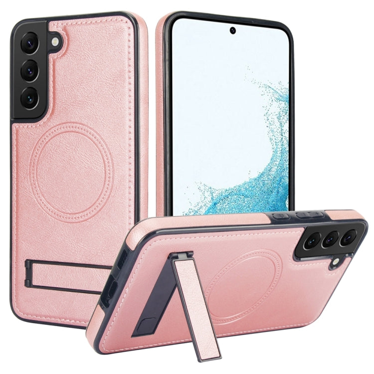 For Samsung Galaxy S22 5G Retro Leather Invisible Stand MagSafe Phone Case(Rose Gold)