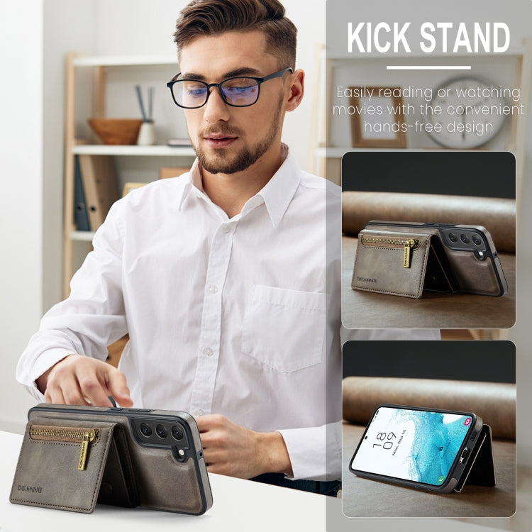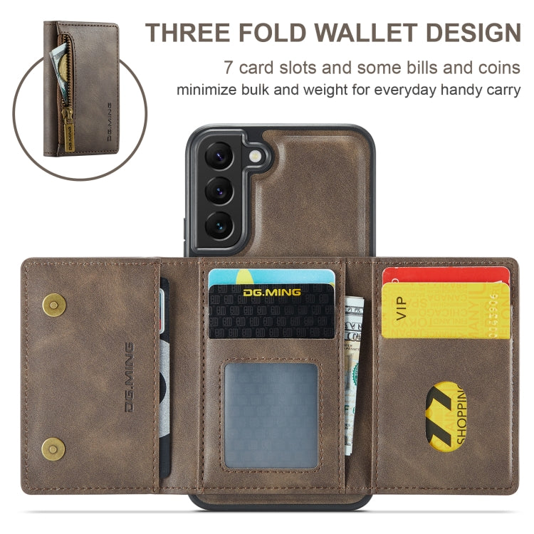 For Samsung Galaxy S22 DG.MING M5 Series Zip RFID Multi Card Detachable Leather Phone Case(Coffee)