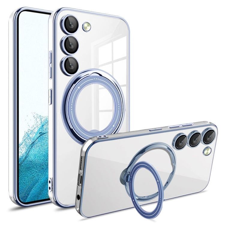 For Samsung Galaxy S22 Electroplating MagSafe 360 Degree Rotation Holder Shockproof Phone Case(Blue)