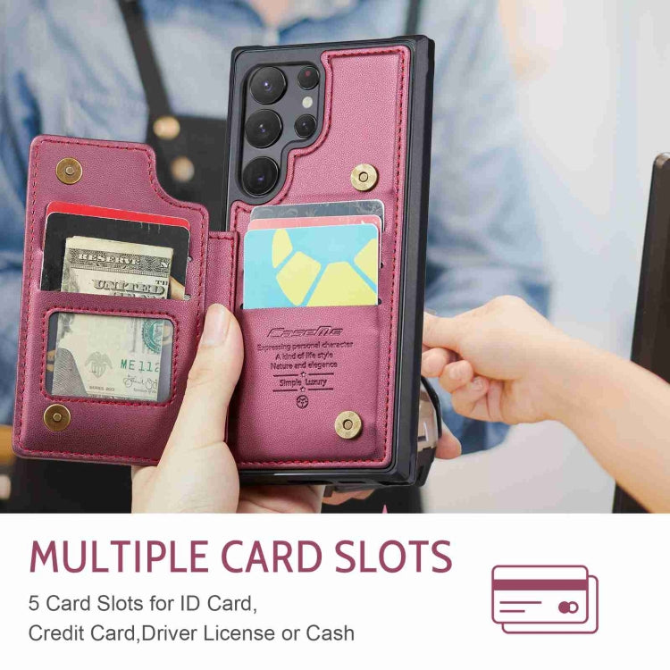 For Samsung Galaxy S22 Ultra 5G CaseMe C22 Card Slots Holder RFID Anti-theft Phone Case(Wine Red)