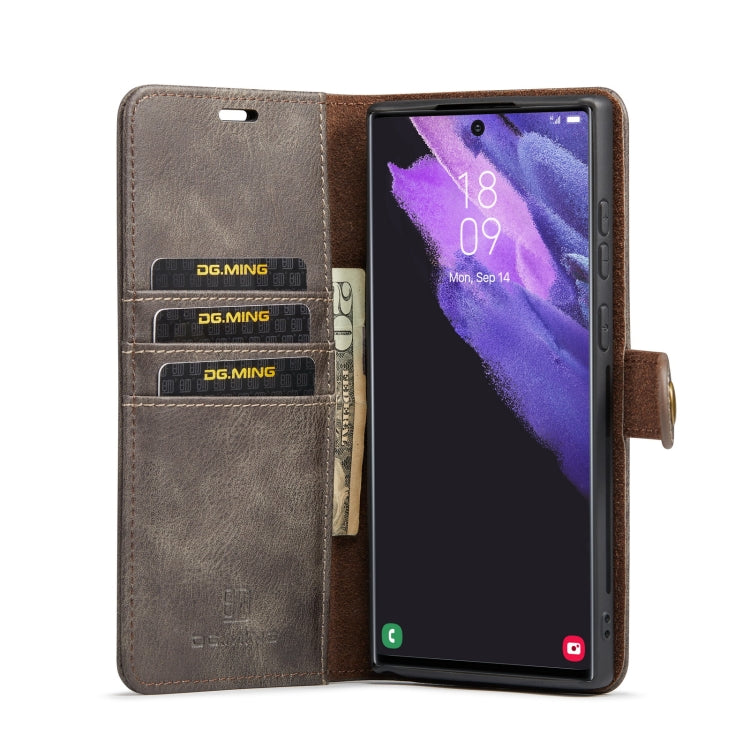 For Samsung Galaxy S22 Ultra 5G DG.MING Crazy Horse Texture Detachable Magnetic Leather Phone Case(Grey)