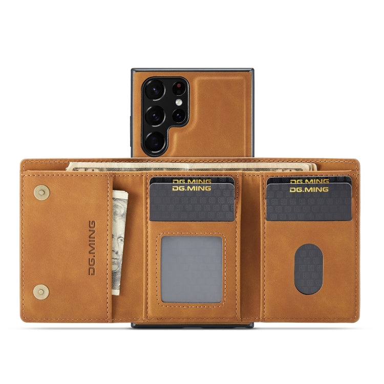 For Samsung Galaxy S22 Ultra 5G DG.MING M1 Series 3-Fold Multi Card Wallet Phone Case(Brown)