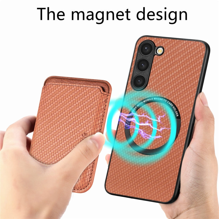For Samsung Galaxy S23 5G Carbon Fiber Leather Card Magsafe Case(Brown)