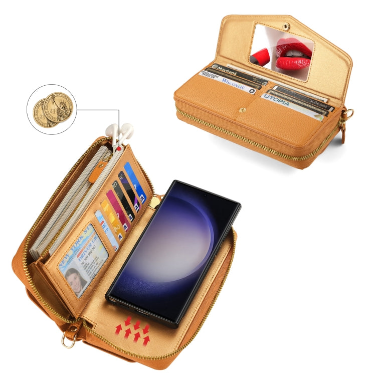 For Samsung Galaxy S23+ 5G Crossbody Multi-functional Zipper Wallet Litchi Leather Phone Case(Orange)