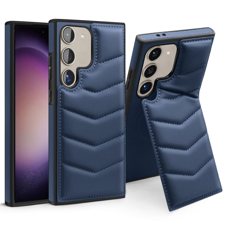 For Samsung Galaxy S23+ 5G Down Jacket Card Bag Holder MagSafe Phone Case(Royal Blue)