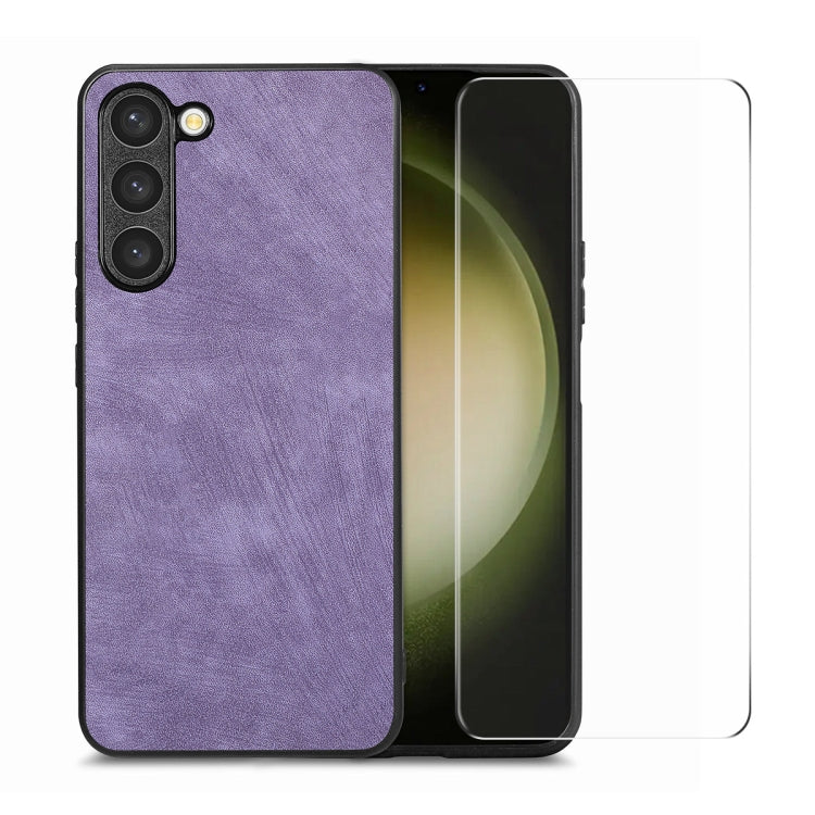 For Samsung Galaxy S23+ 5G ENKAY Retro Leather Skin PC Phone Case with 0.18mm Glass Film(Purple)