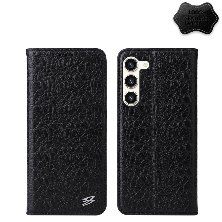 For Samsung Galaxy S23+ 5G Fierre Shann Crocodile Texture Magnetic Genuine Leather Phone Case(Black)