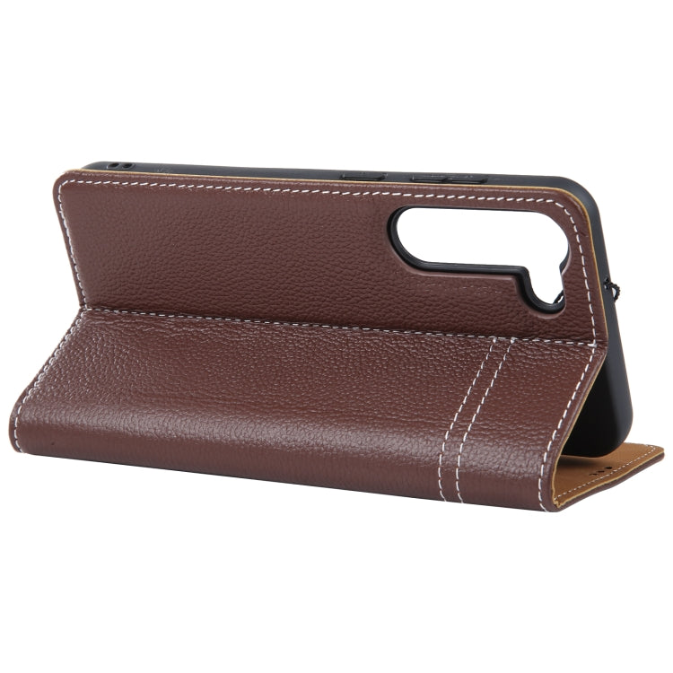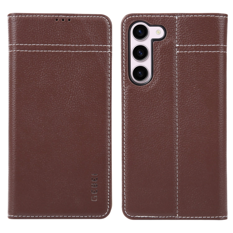 For Samsung Galaxy S23+ 5G GEBEI Top-grain Horizontal Flip Leather Phone Case(Brown)