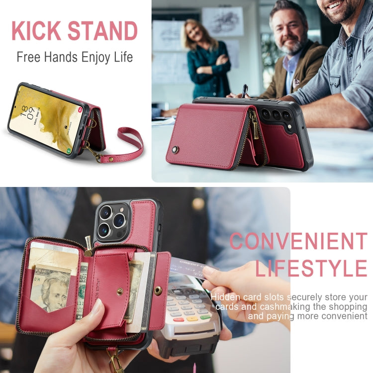For Samsung Galaxy S23+ 5G JEEHOOD C22 Series Zipper Wallet Leather Phone Case with Dual Lanyard(Red)