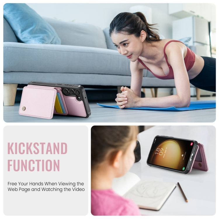For Samsung Galaxy S23+ 5G JEEHOOD J05 Business Magnetic Style RFID Leather Phone Case(Pink)