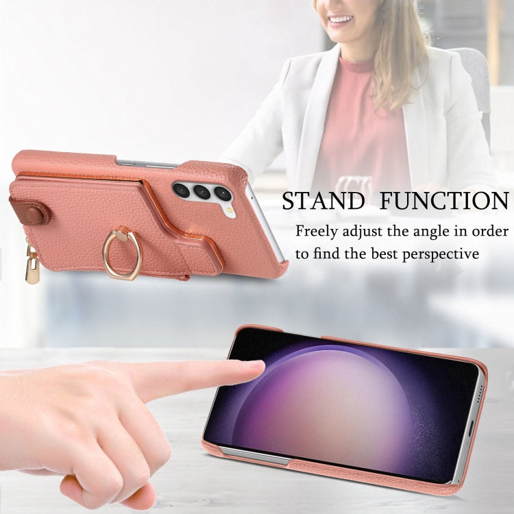 For Samsung Galaxy S23+ 5G Litchi Leather Oil Edge Ring Zipper Wallet Back Phone Case(Pink)