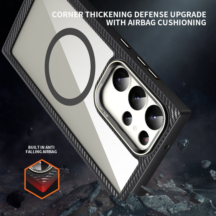 For Samsung Galaxy S23 5G MagSafe Carbon Fiber Transparent Back Panel Phone Case(Blue)