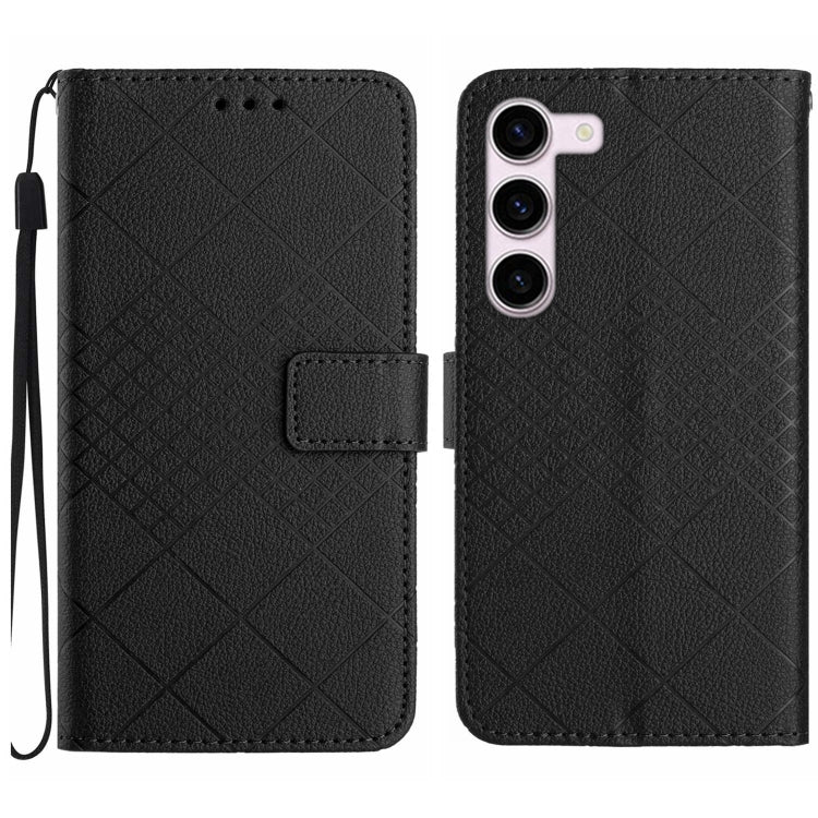 For Samsung Galaxy S23 5G Rhombic Grid Texture Leather Phone Case(Black)