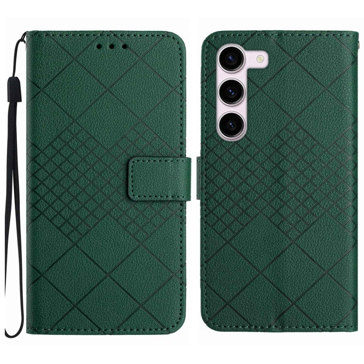 For Samsung Galaxy S23+ 5G Rhombic Grid Texture Leather Phone Case(Green)
