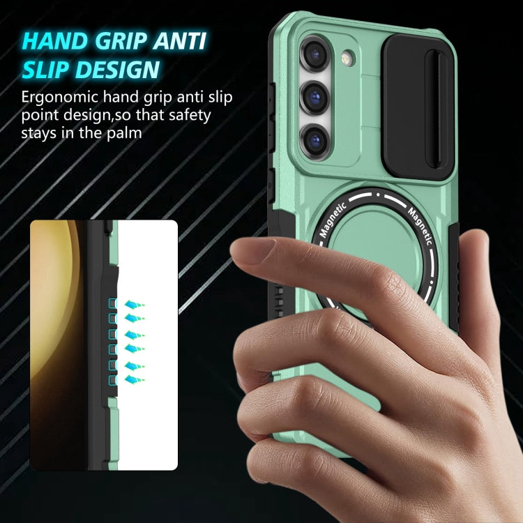 For Samsung Galaxy S23+ 5G Sliding Camshield Magsafe Holder TPU Hybrid PC Phone Case(Light Blue)