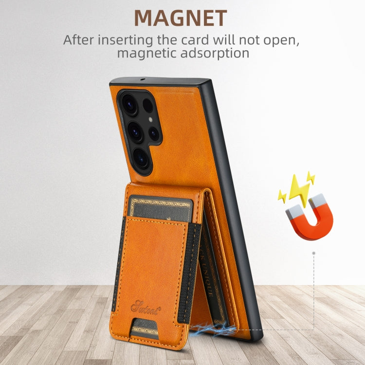 For Samsung Galaxy S23 5G Suteni H17 Oil Eax Leather MagSafe Detachable Wallet Phone Case(Khaki)