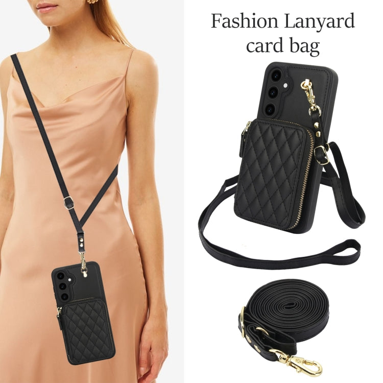 For Samsung Galaxy S23 FE 5G AwQuer Crossbody Zipper Wallet Rhombic Leather Back Phone Case(Black)