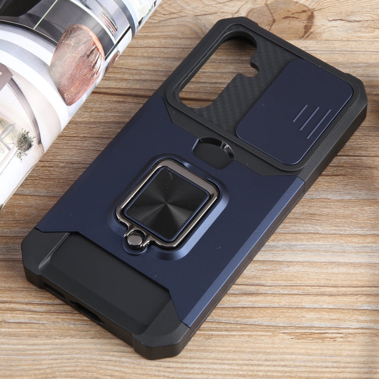 For Samsung Galaxy S23 FE 5G Camera Shield Card Slot PC+TPU Phone Case(Blue)