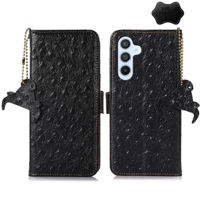 For Samsung Galaxy S23 FE 5G Ostrich Pattern Genuine Leather RFID Phone Case(Black)
