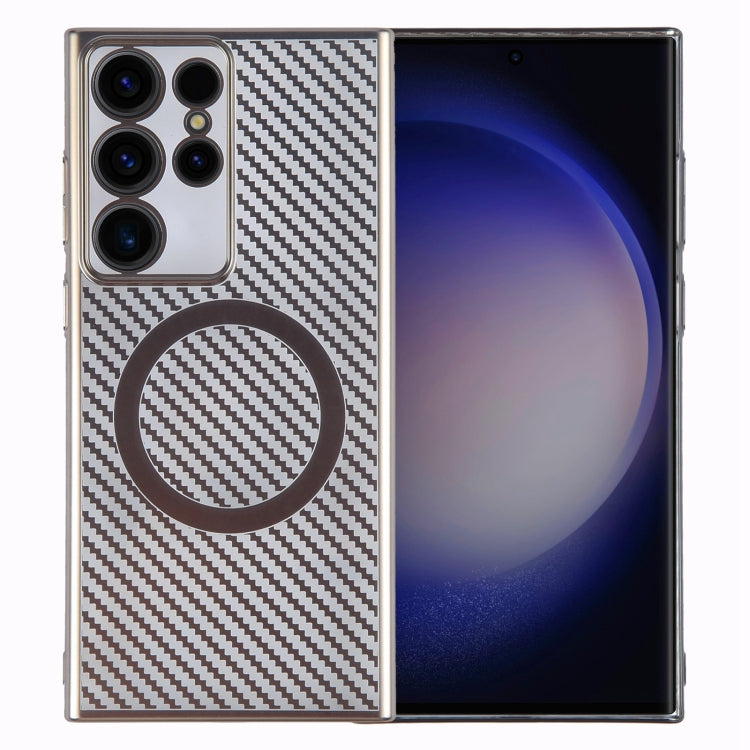 For Samsung Galaxy S23 Ultra 5G 6D Plated Carbon Fiber Clear Magsafe PC Phone Case(Titanium Grey)