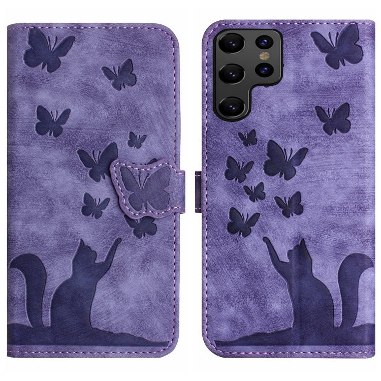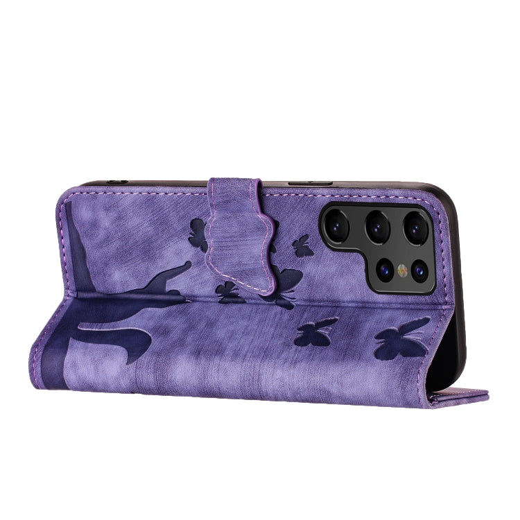 For Samsung Galaxy S23 Ultra 5G Butterfly Cat Embossing Flip Leather Phone Case(Purple)
