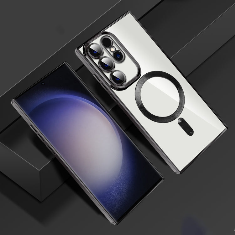 For Samsung Galaxy S23 Ultra 5G CD Texture Plating TPU MagSafe Phone Case with Lens Film(Black)