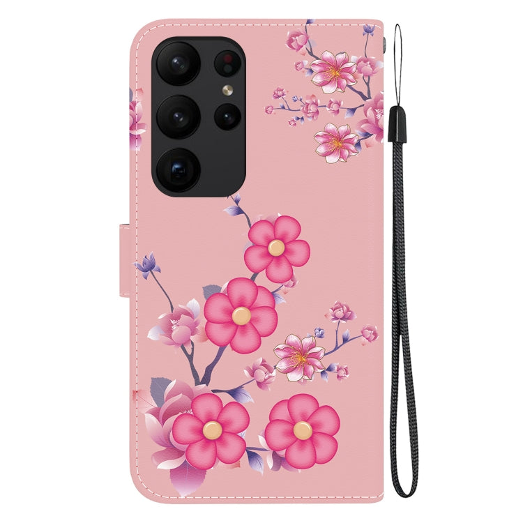 For Samsung Galaxy S23 Ultra 5G Crystal Texture Colored Drawing Leather Phone Case(Cherry Blossoms)