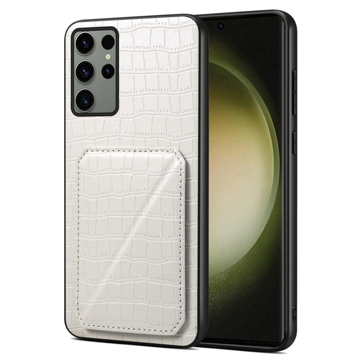 For Samsung Galaxy S23 Ultra 5G Denior Imitation Crocodile Leather Back Phone Case with Holder(White)