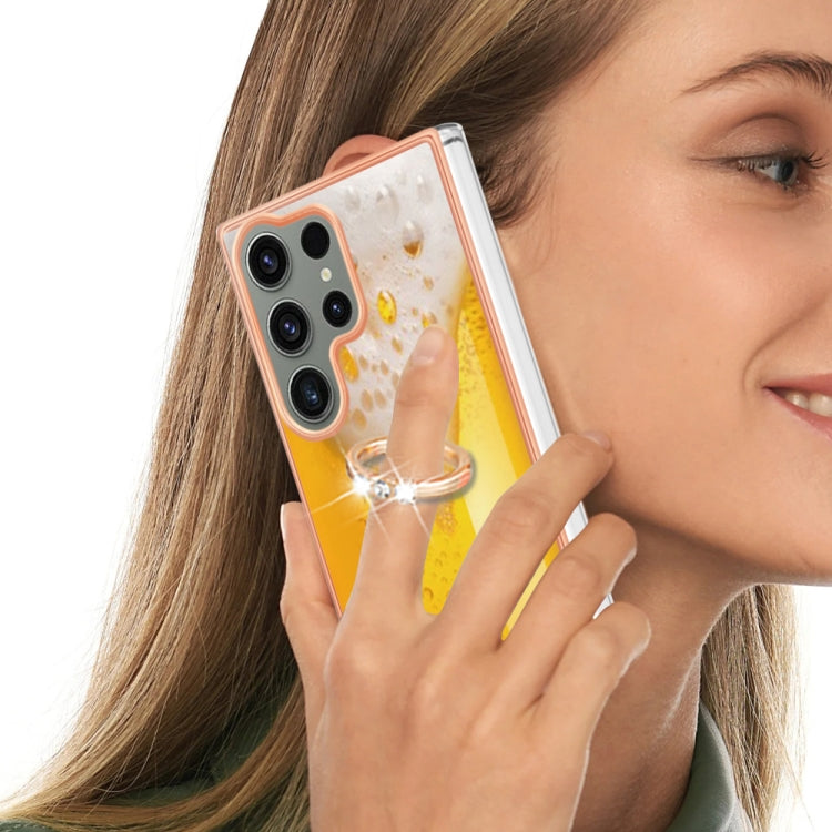 For Samsung Galaxy S23 Ultra 5G Electroplating Dual-side IMD Phone Case with Ring Holder(Draft Beer)
