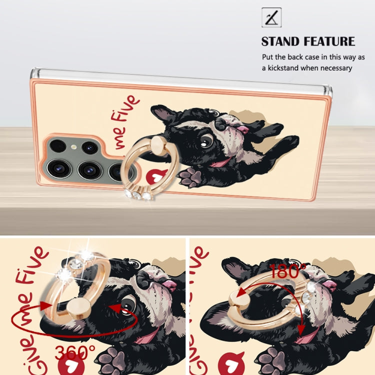 For Samsung Galaxy S23 Ultra 5G Electroplating Dual-side IMD Phone Case with Ring Holder(Lucky Dog)