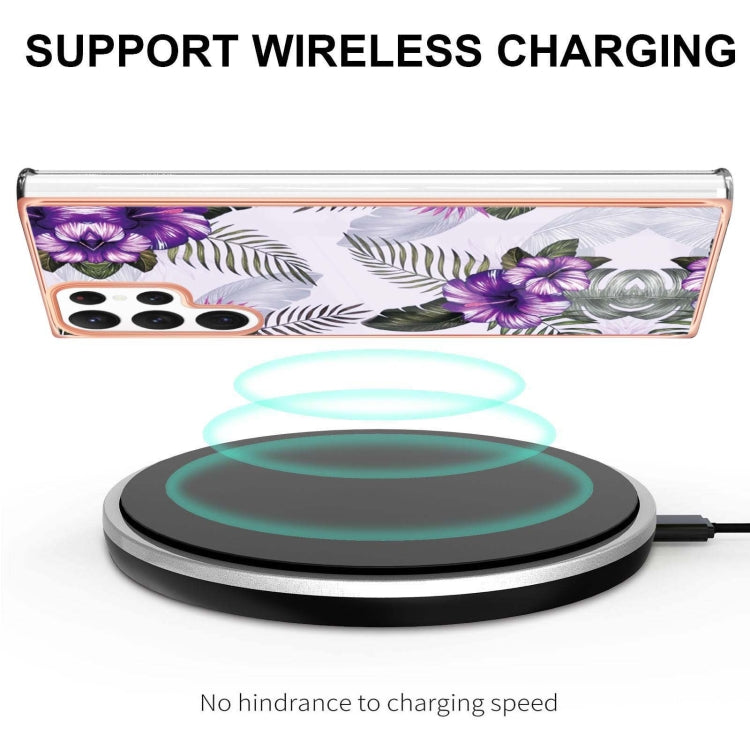For Samsung Galaxy S23 Ultra 5G Electroplating IMD TPU Phone Case(Purple Flower)