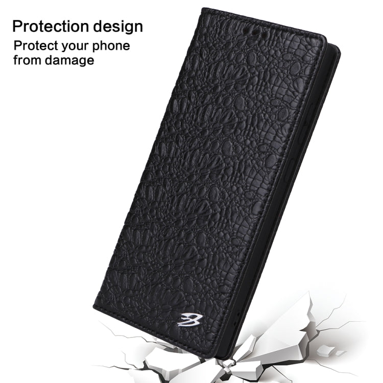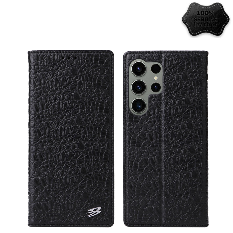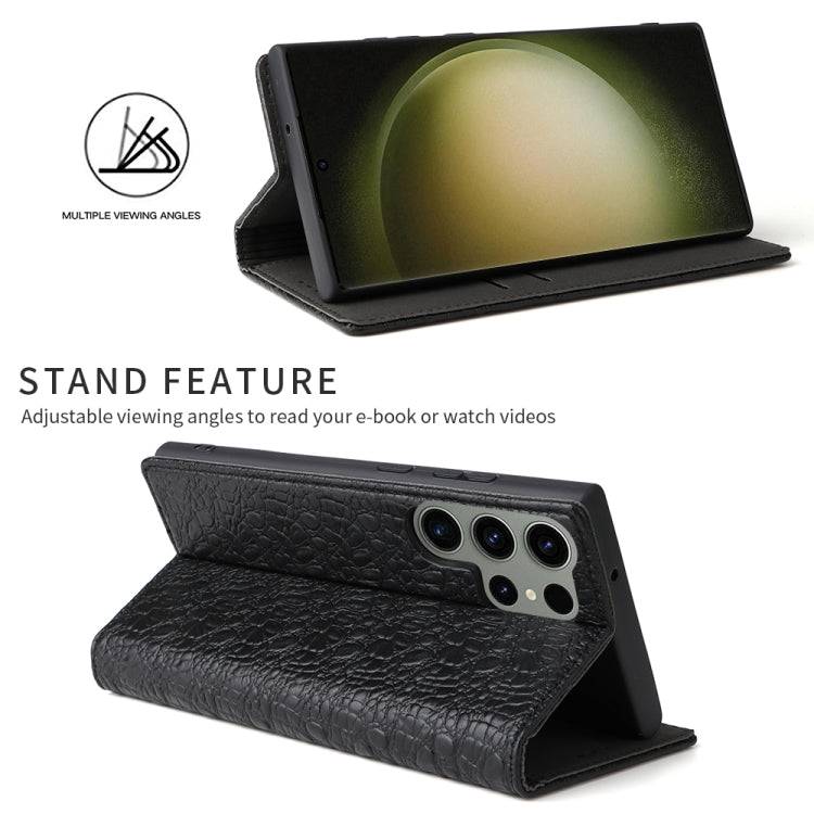 For Samsung Galaxy S23 Ultra 5G Fierre Shann Crocodile Texture Magnetic Genuine Leather Phone Case(Black)