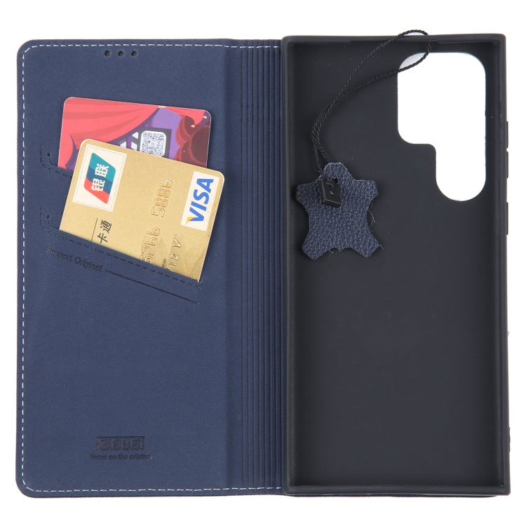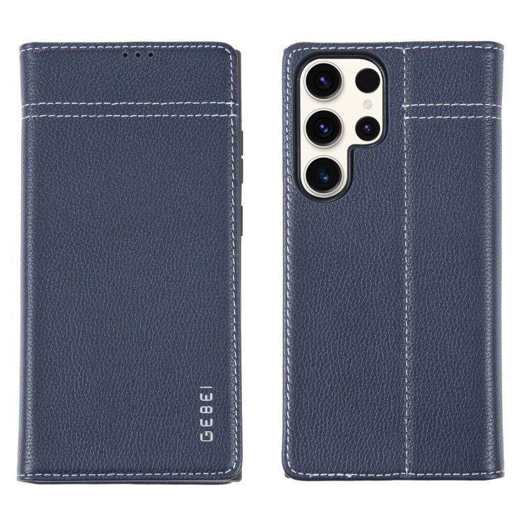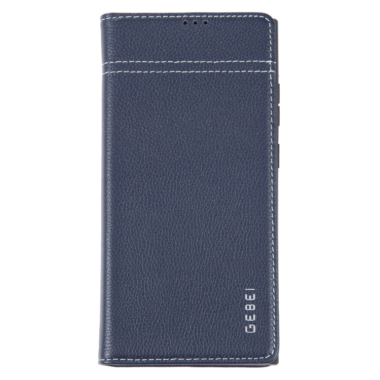 For Samsung Galaxy S23 Ultra 5G GEBEI Top-grain Horizontal Flip Leather Phone Case(Blue)